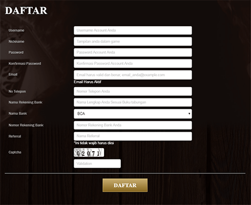 Setelah Anda melihat form pendaftarannya, Anda diwajibkan isi data dengan benar dan valid. Jika Anda daftar di MesraPoker tanpa ada yang merekomendasikan maka kolumnya di kosongkan saja. Setelah selesai semua Anda tinggal klik tombol ”DAFTAR” maka akun anda sudah siap untuk di pakai untuk bermain poker online dan bandar ceme. bagi Anda yang masih pemula dan belum mengerti bagaimana cara daftar dan bermain di Situs IDN Poker online di MesraPoker.